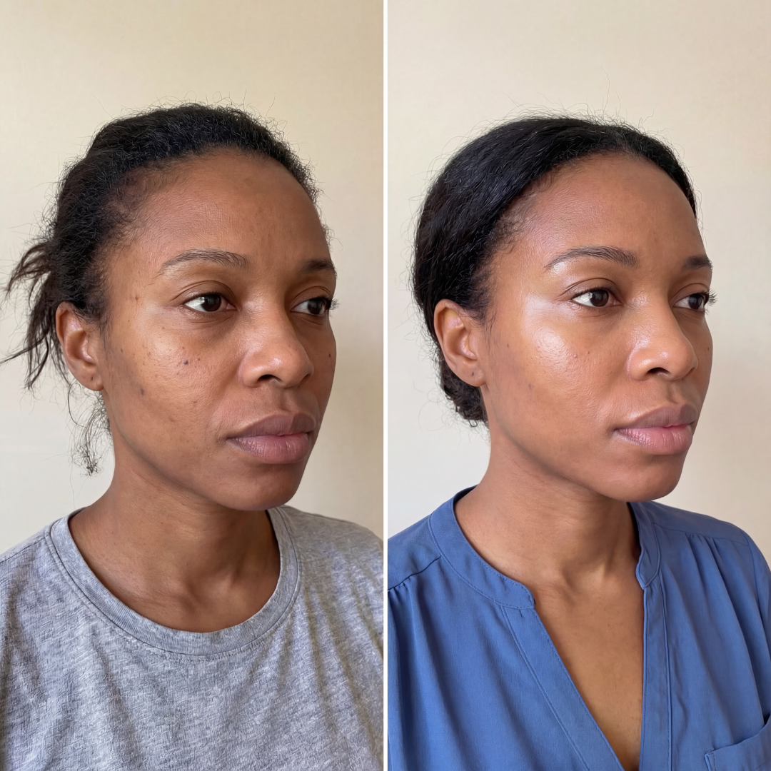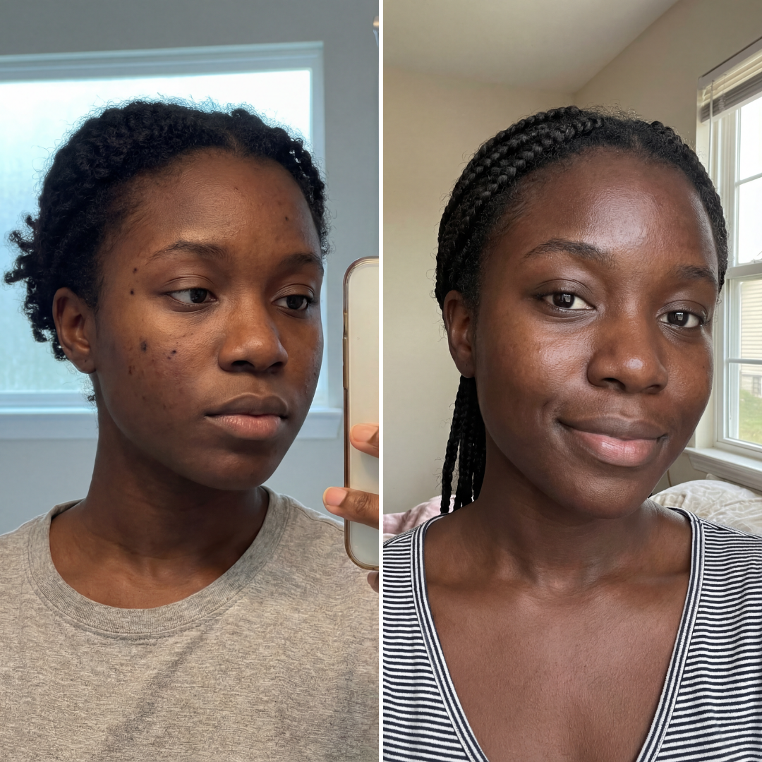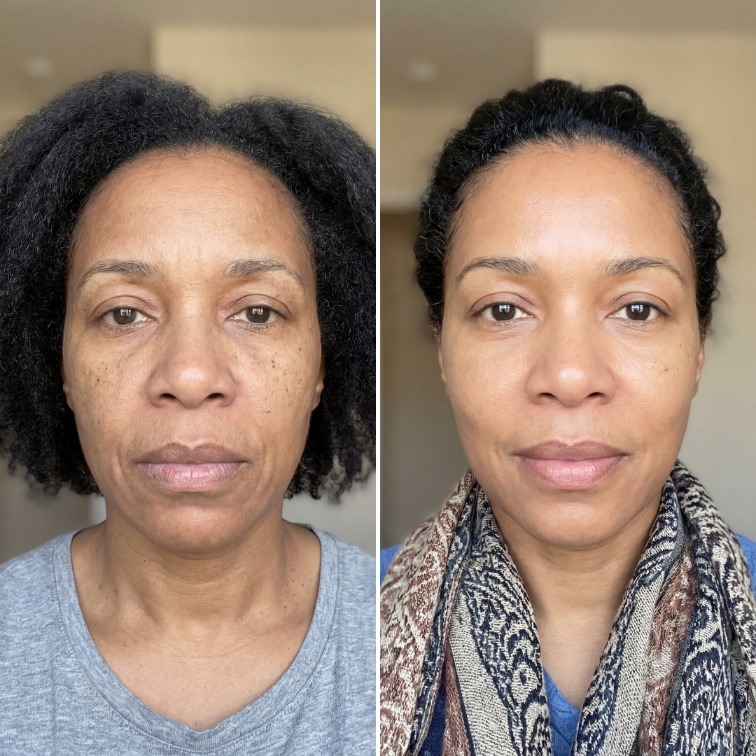 Our formulas are designed to support clarity, radiance, and even-looking skin, without altering your natural complexion or melanin.